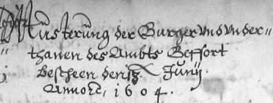 | Musterung der Bürger und Underthanen des Ambts Beffort bestehen den 18en Junÿ anno D. 1604 |