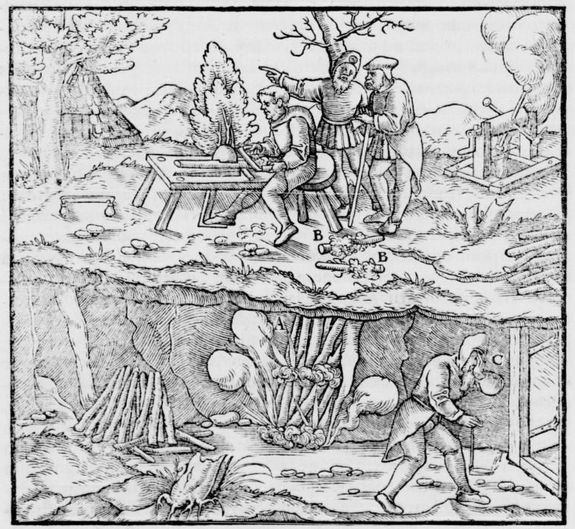 On pourra feuilleter sur ce sujet sur le site de la BnF un document exceptionnel : De re metallica libri XII , quibus officia, instrumenta, machinae ac omnia... de Georg Agricola (1494-1555) dont sont extraites les illustrations (un peu antérieures à la période de l'acte) de cette page.