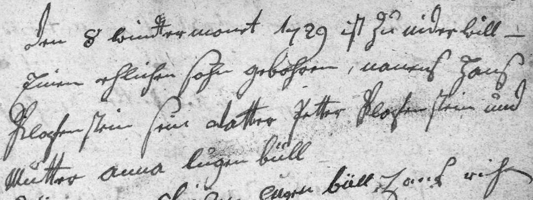 Dans cet acte de 1729, il prend à bail pour 6 ans la vacherie des Chéseaux à Montreux-Jeune appartenant au comte de Reinach. Il résidait déjà à Montreux depuis quelques mois (cité comme témoin en février 1729). Mais il délaissera vite ce bail, car, dès novembre, à la naissance de son fils Hans (sans doute son premier enfant), il est donné comme fermier à Niederwyhl (68290 Bourbach-le-Haut) :