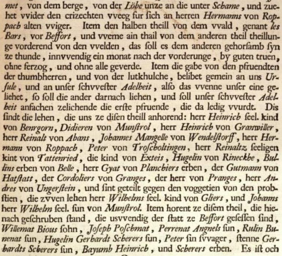 Waites, herr Friderich von Chastaillon, hu herr’in erben von Champels, die tochter von Flagey, des von Bellewilre leben, Ludowig von Cuvé, herr Gerhart