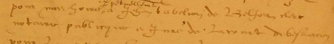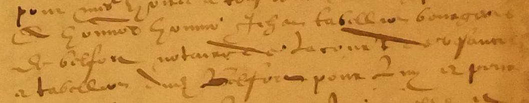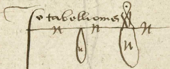 De Villèle a déterminé que Tabellion avait été clerc ou tabellion de la ville de 1429 à 1475. Il signe 6 actes de son élégant paraphe :