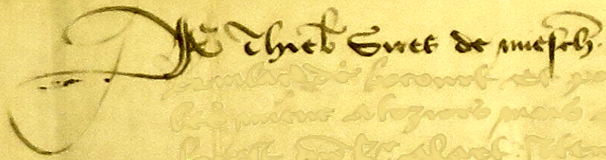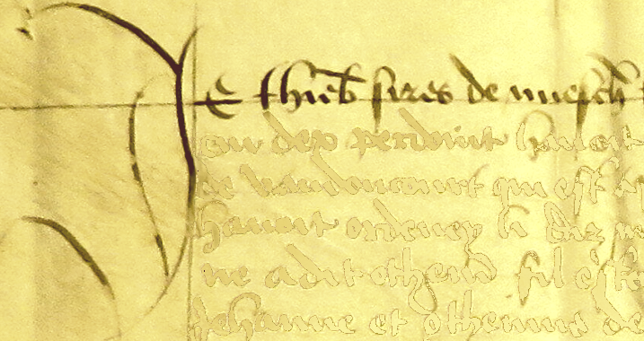 | 1 | Je Thiebault sires de Nuefchastel fais scavoir à tous que, come je hae trovey prins par l'informacion de bones genz que Mess(ire) Thiebauz mes peres, |