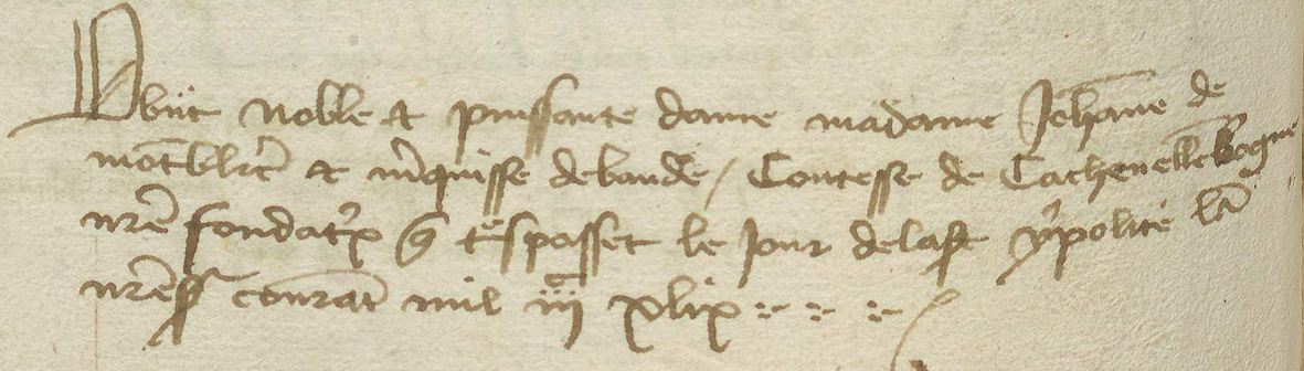 Malgré ces incertitudes, lorsqu'un document cité, comme par exemple la première assignation de la rente mentionnée, est potentiellement contemporain du décès du fondateur, nous avons saisi l'année pour date de l'acte (9). Dans les autres cas, les plus fréquents, nous nous sommes abstenus de saisir une date ; l'acte apparaîtra donc comme "non daté".