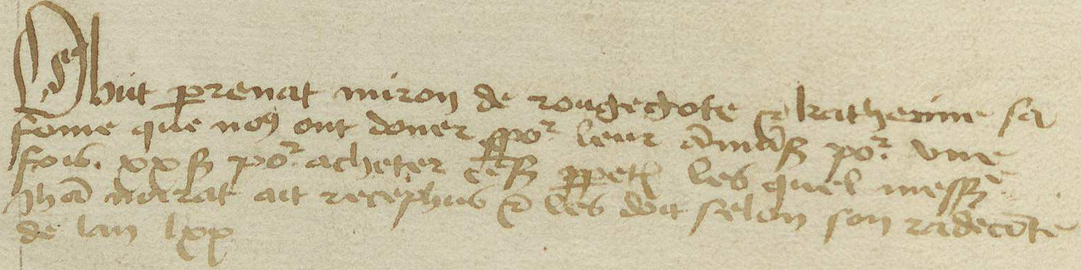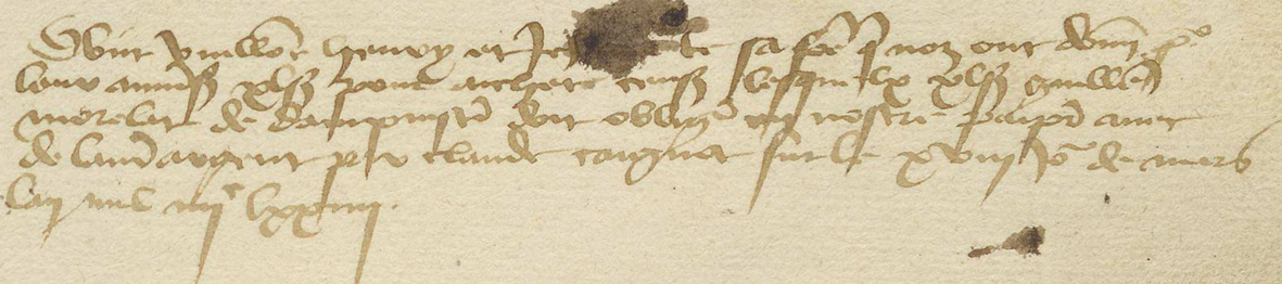 Dans le suivant, c'est messire Jehan Henry frere doudit Vuillaume Marcoulz. Ici, Marcoulz apparaît d'avantage comme un proto-patronyme (le clerc a sans doute recopié à l'identique le contenu des écrits dont il disposait).