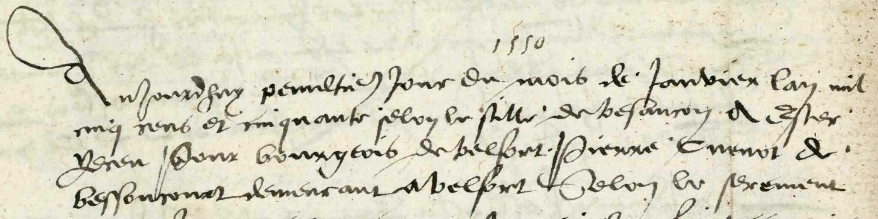 Il s'agit donc d'un acte (réception en bourgeoisie de Pierre Cuenot) que nous devons dater du 30/01/1551.