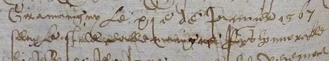 Dans cette archive "notariale", le changement de style (après 1567) apparaît donc plus tardif que dans la précédente (avant 1564). Il semble cependant bien que, dans les années 1560, la plupart des clercs ont bien compris que tout est plus pratique et logique dans un système où le début d'année est toujours à la même date (6). Néanmoins, quels que soient leurs choix, ils ne commettent aucune erreur (on est loin des confusions auxquelles donnera lieu le calendrier révolutionnaire en 1792-1794). Ils fournissent toutes les précisions nécessaires pour éviter une erreur d'interprétation.