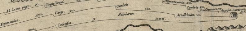 | Vesoncine | -> | Loposagio | -> | Epomanduo | -> | Large | -> | Cambere | -> | Arialbinum | -> | Augusta-Roracum |
